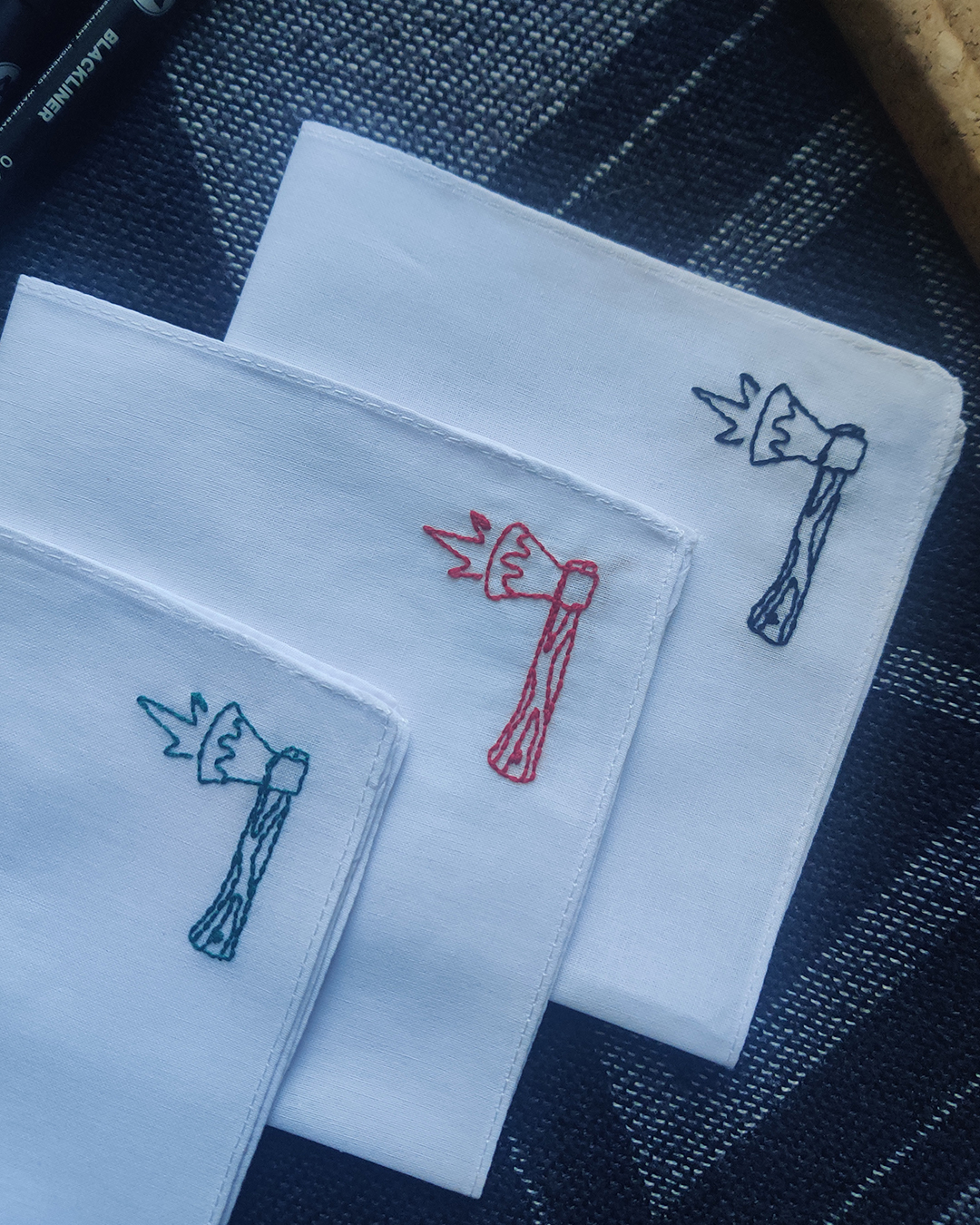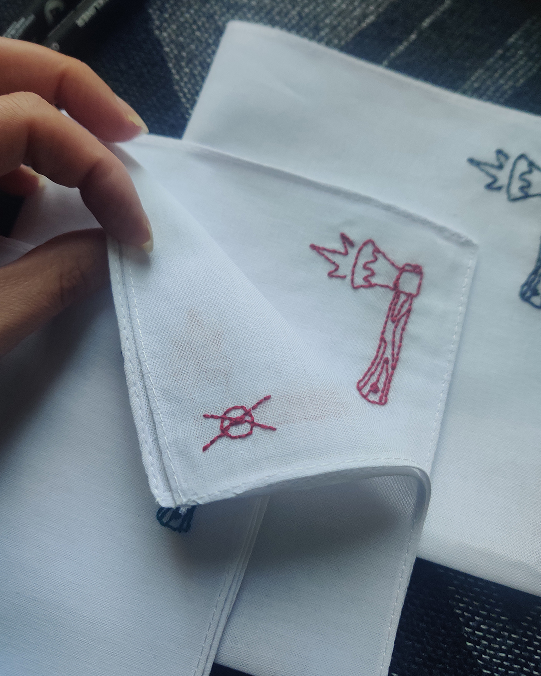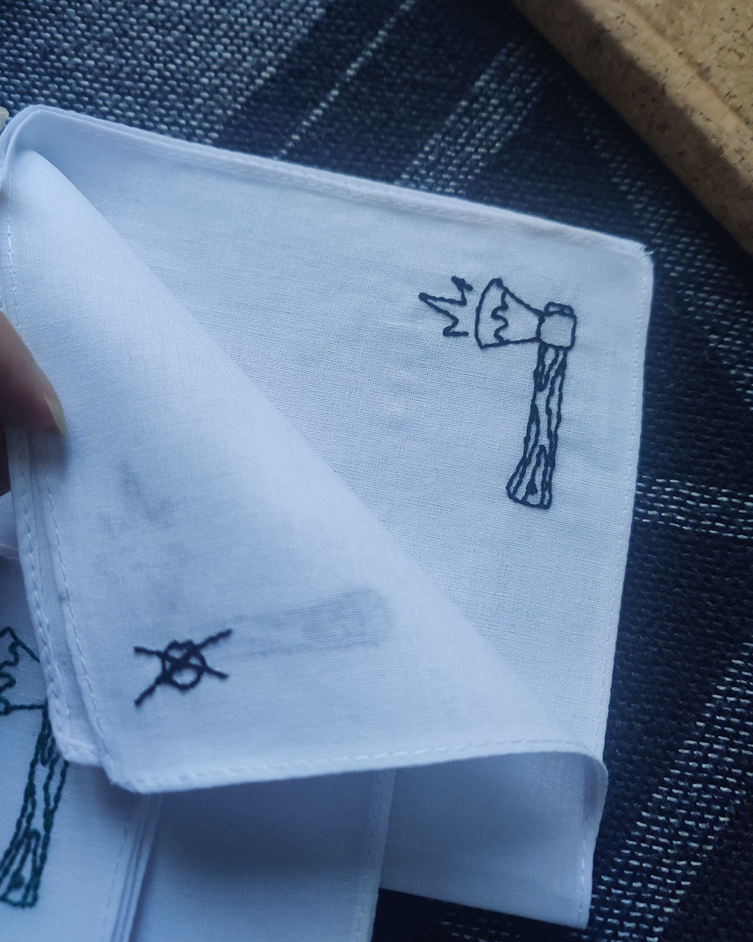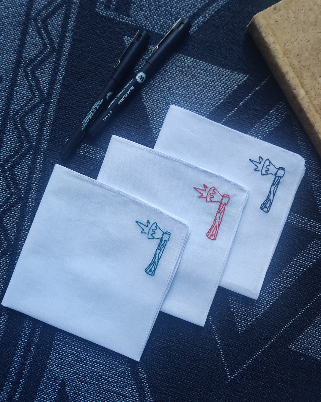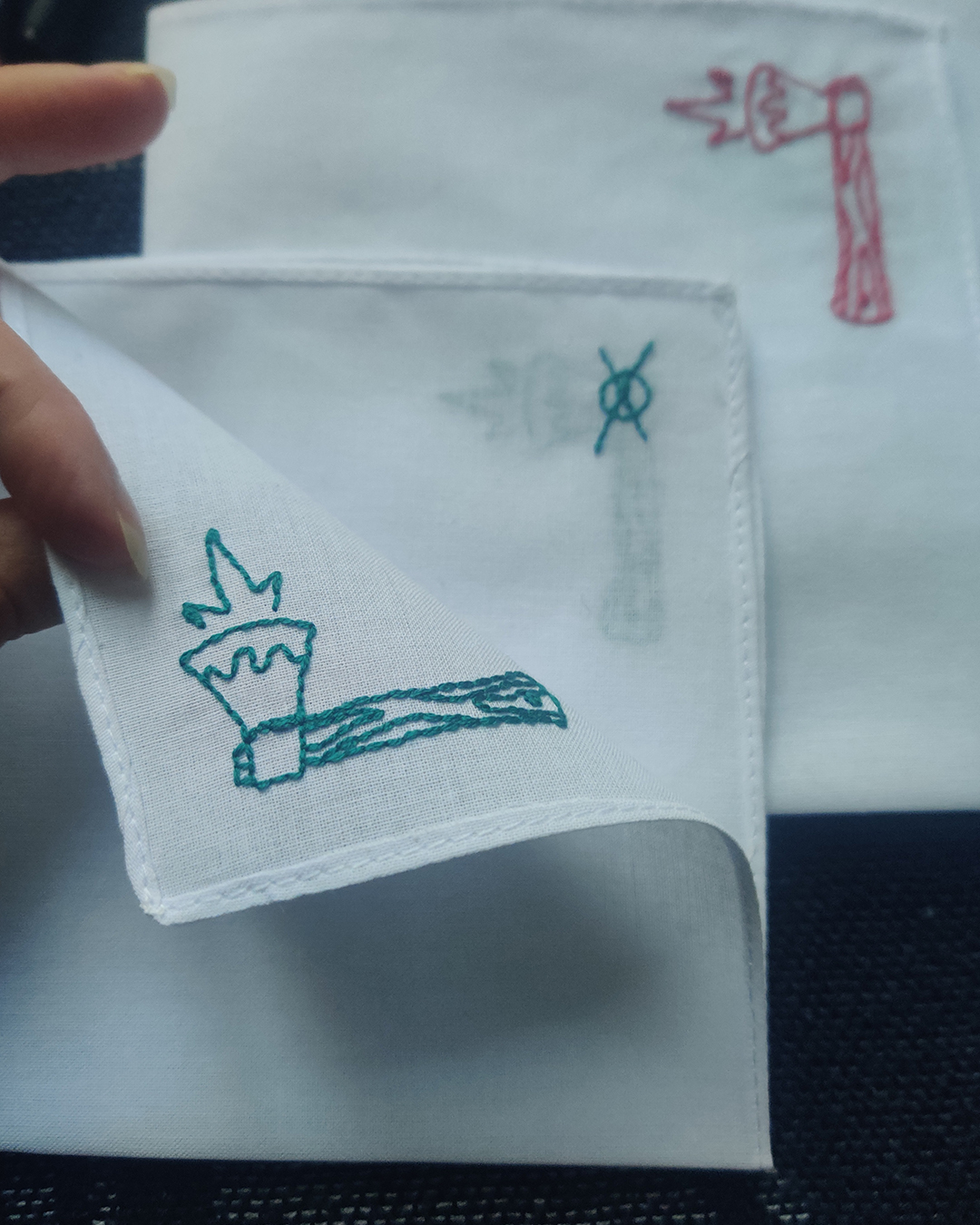 Mouchoir 100% coton, brodé à la main. Environ 28,5 x 28,5 cm.